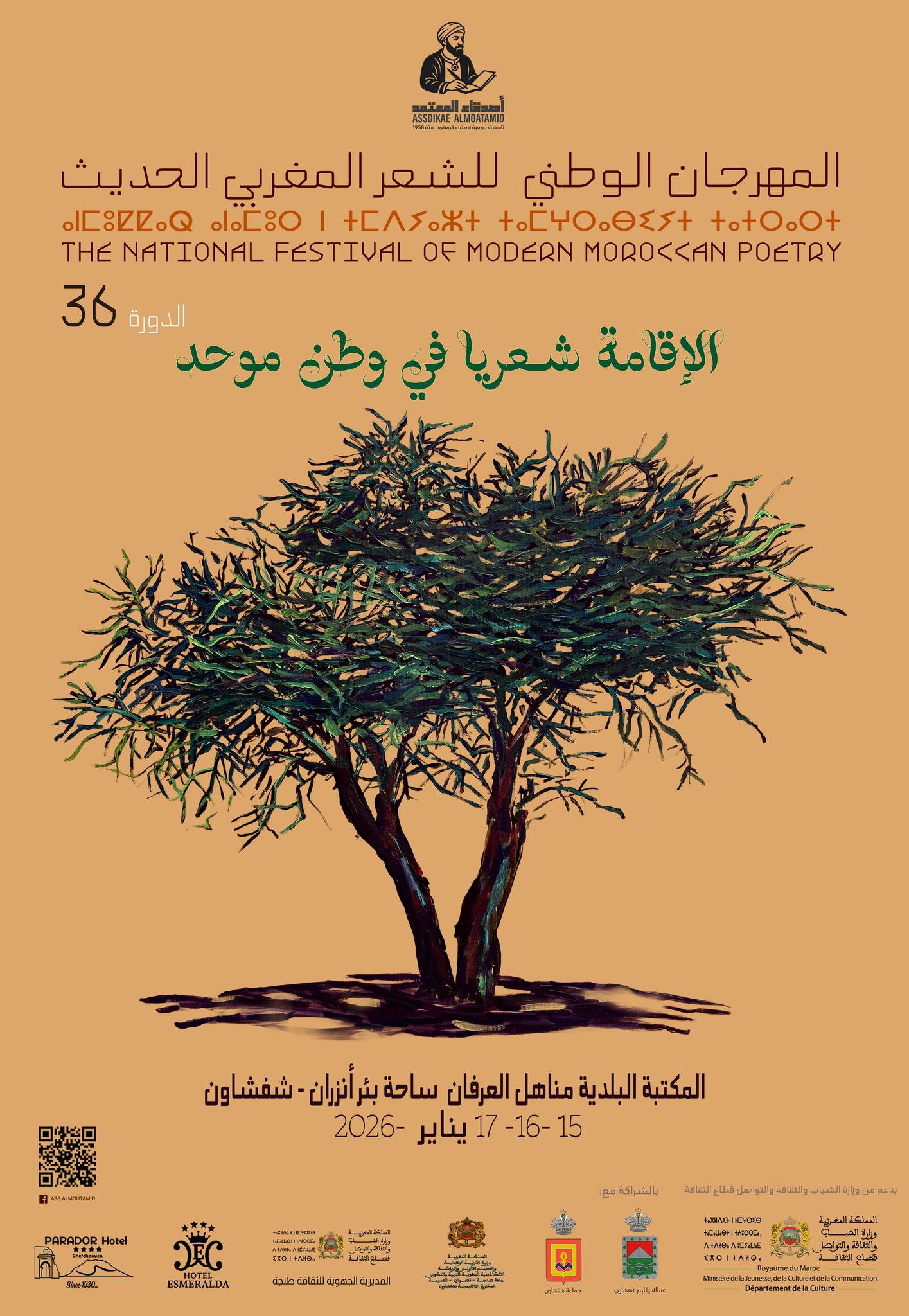 بعد تأجيل اضطراري، يعود المهرجان الوطني للشعر المغربي الحديث في دورته الـ 36، التي تنظمها جمعية أصدقاء المعتمد بمدينة شفشاون أيام 15 و16 و17 يناير 2025 تحت شعار “الإقامة شِعريا في وَطن موحد”.