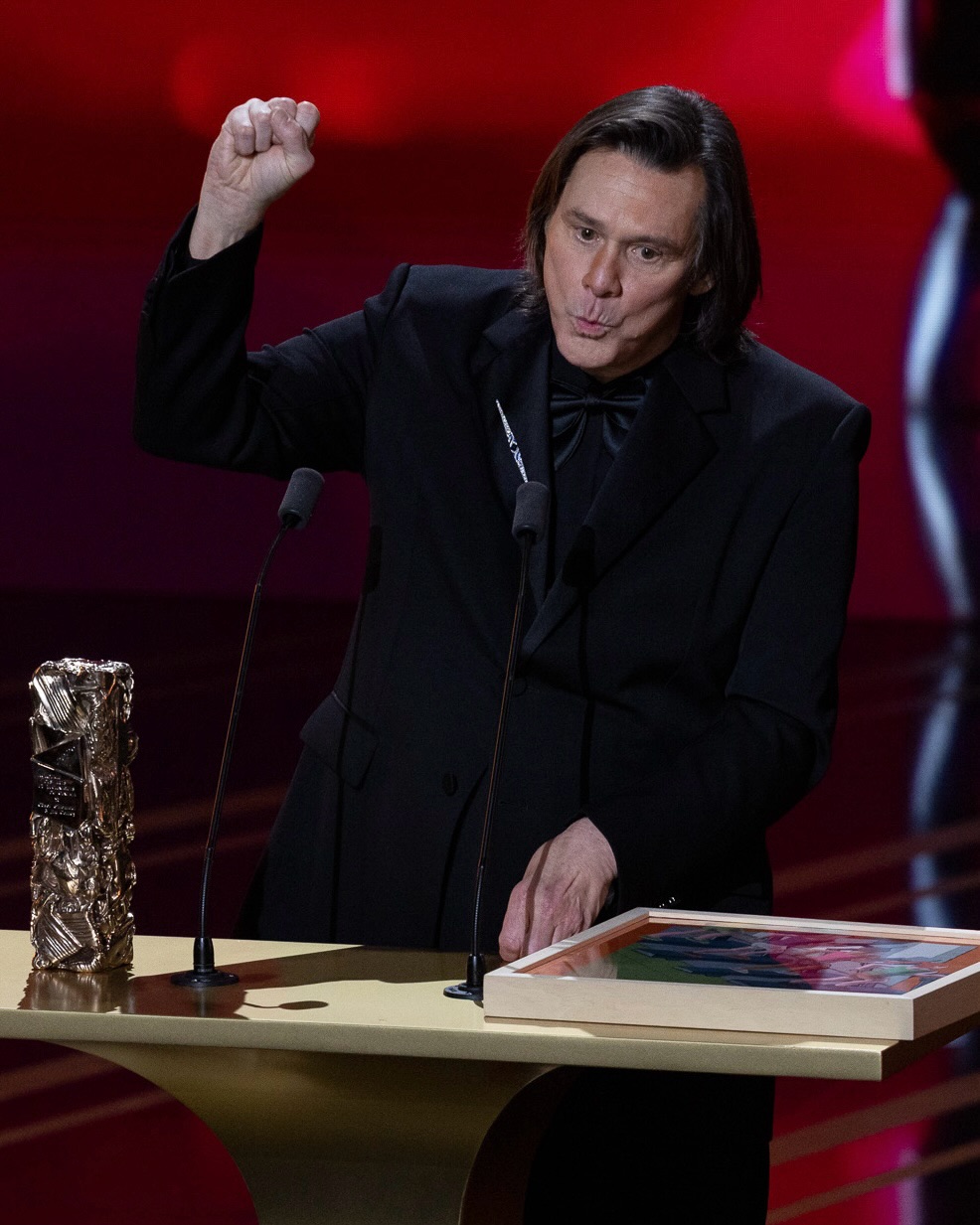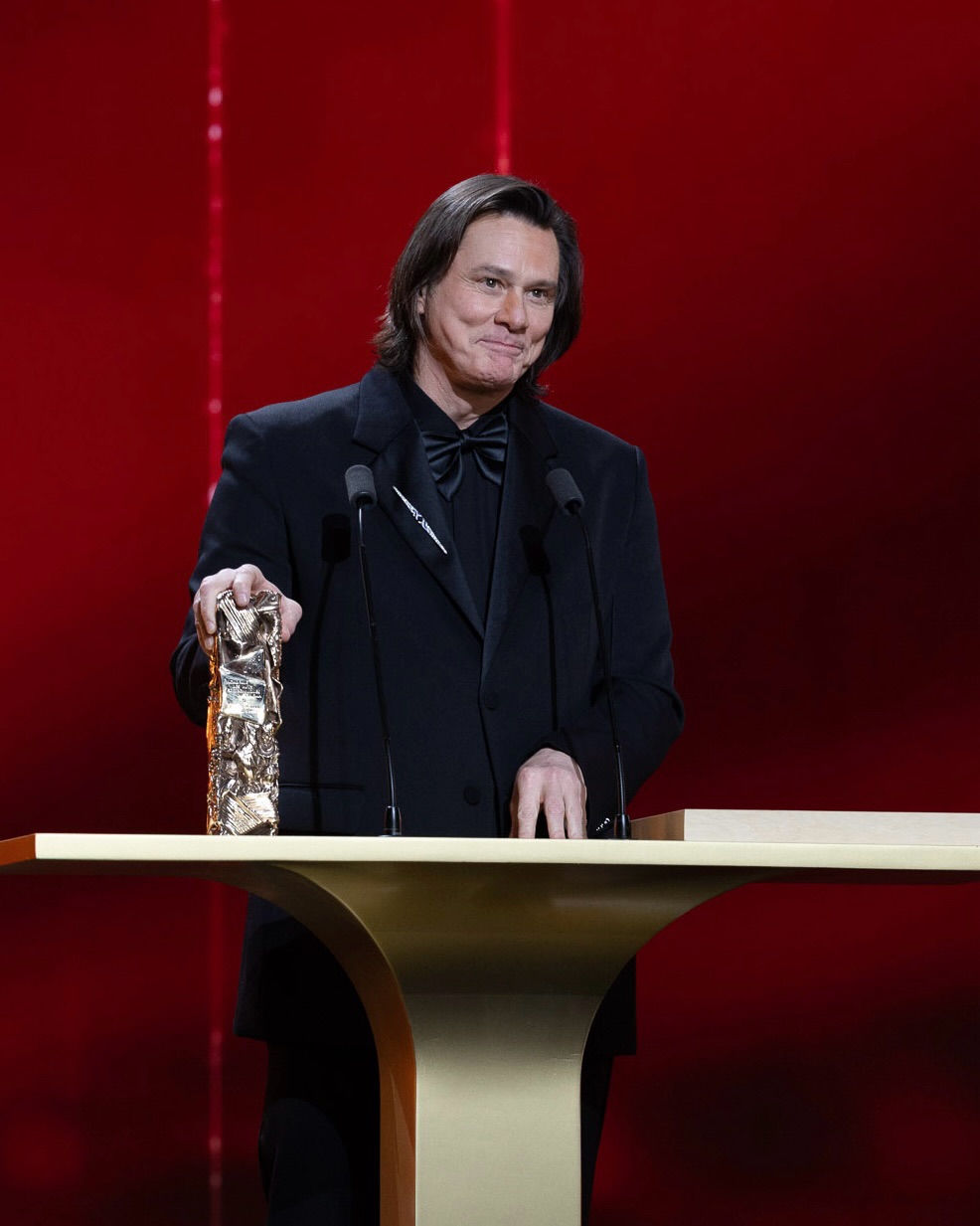وتولى المخرج الفرنسي ميشيل غوندري، الذي تعاون مع كاري قبل 22 عاما في فيلم “إشراقة أبدية لعقل طاهر” Eternal Sunshine of the Spotless Mind، مهمة تقديم الجائزة للنجم العالمي، وما إن صعد كاري إلى المسرح، حتى وقف الحضور في تصفيق حار وطويل، احتراما لمسيرته وتقديرا لحضوره النادر بعد ابتعاده في السنوات الأخيرة عن الأضواء.